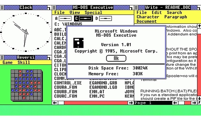 The first Windows 1 was launched in November 1985 as the company’s first attempt at creating a graphical interface in 16-bit. This was the first software that relied on the use of a mouse; back then the mouse wasn’t a very commonly used input device. So, in order to help people get used to this, Microsoft even included a game called Reversi, which relied on mouse control.
