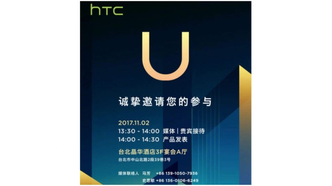 HTC sent out invites for an event to be held on the 2nd of November in Taiwan. The event indicates that a new smartphone will be announced as a part of the ‘U’ lineup.