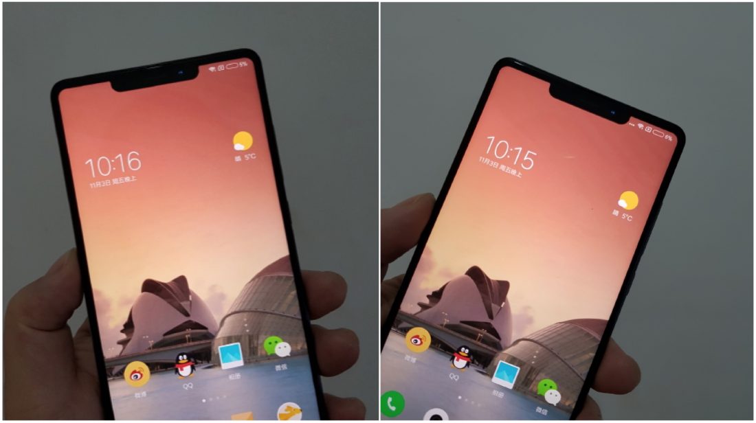The image shows evenly trimmed bezels all around the display. The Mi Mix 2 had a small chin which housed the front-facing camera. The front facing camera here is placed in the top right corner. It is fitted awkwardly which results in a weird notch on the top right corner. Although this looks like a design prototype that would’ve been buried in the back burner, the design does look like new and different.