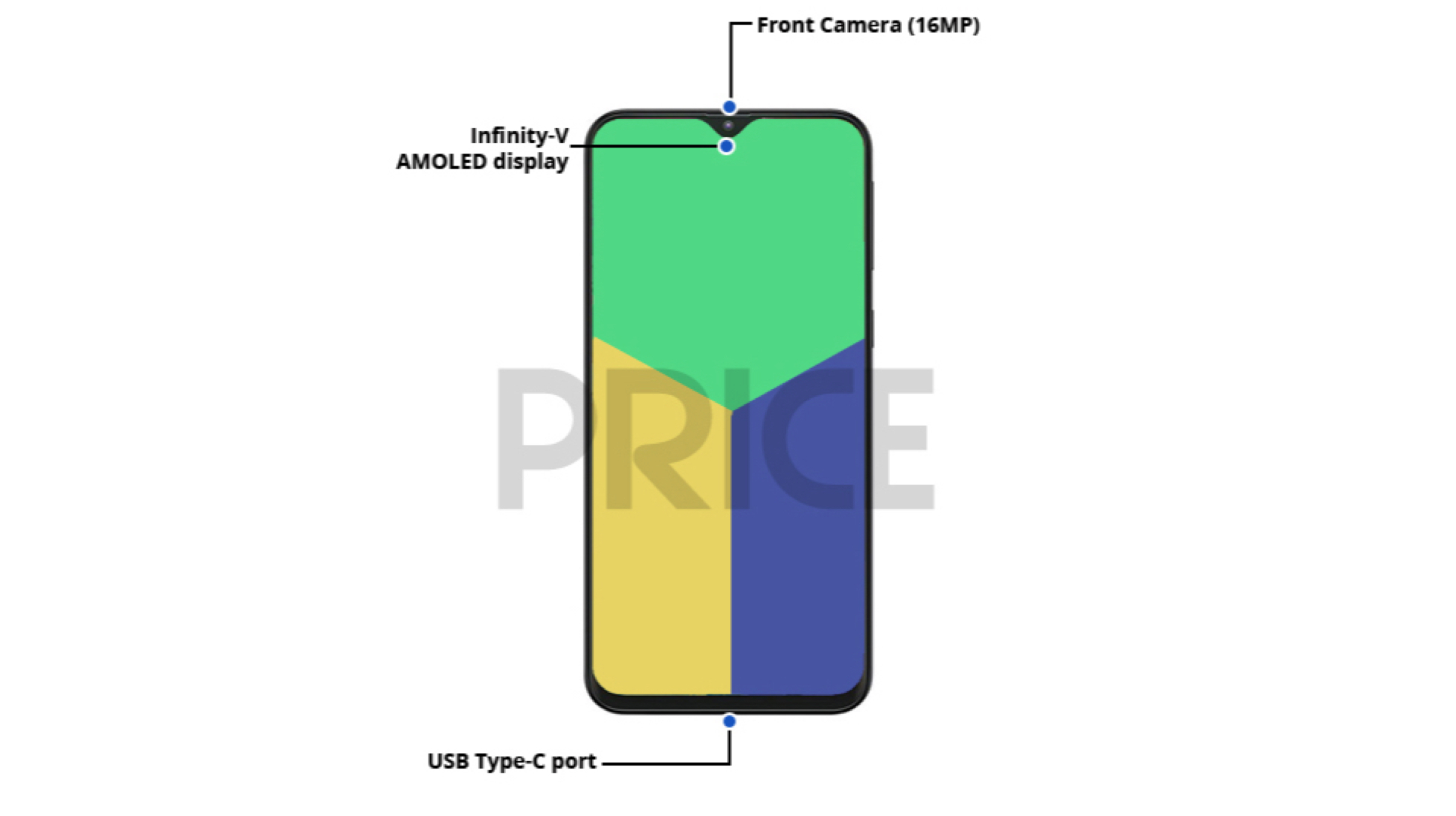 The front of the Galaxy M30 has a large screen display with minimal bezels and an Infinity-V notch that houses a 16 MP selfie camera. Noteworthy, the leak claims that the smartphone has an AMOLED display which is an excellent feature. The right side of the handset is occupied by the volume rocker and power button while a USB Type-C port for charging and data transfer sits on the bottom.