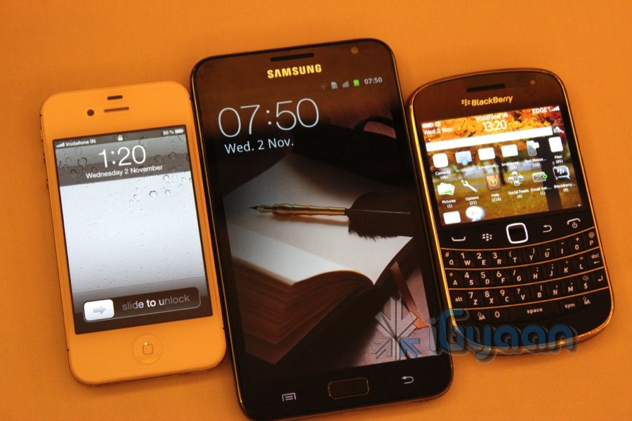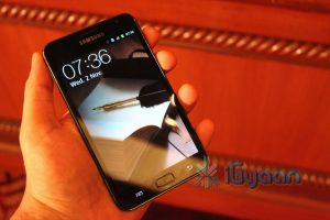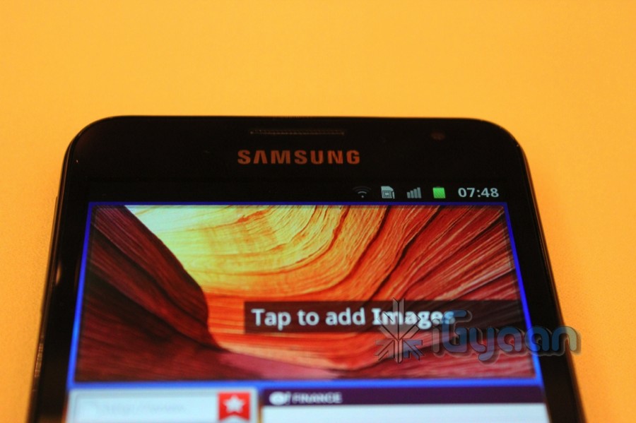We got our hands on the large size Samsung Galaxy Note GT-N7000 pre-launch in India. The event is about to begin and our initial impressions are mixed, the device is ver very big. The device is quite a middle point between a Tablet and a Smartphone and is pretty comfortable for its size. The display even though is 5.3 inches is very crisp with a Super Amoled screen. The device remains very slim and fares almost close to the iPhone 4S at just 9.65mm. The Note is possibly the first smartphone you will enjoy using a stylus on, the precision of the point is great. The Stylus is also a great sketch and edit instrument and you will actually use it a lot if you get this device.