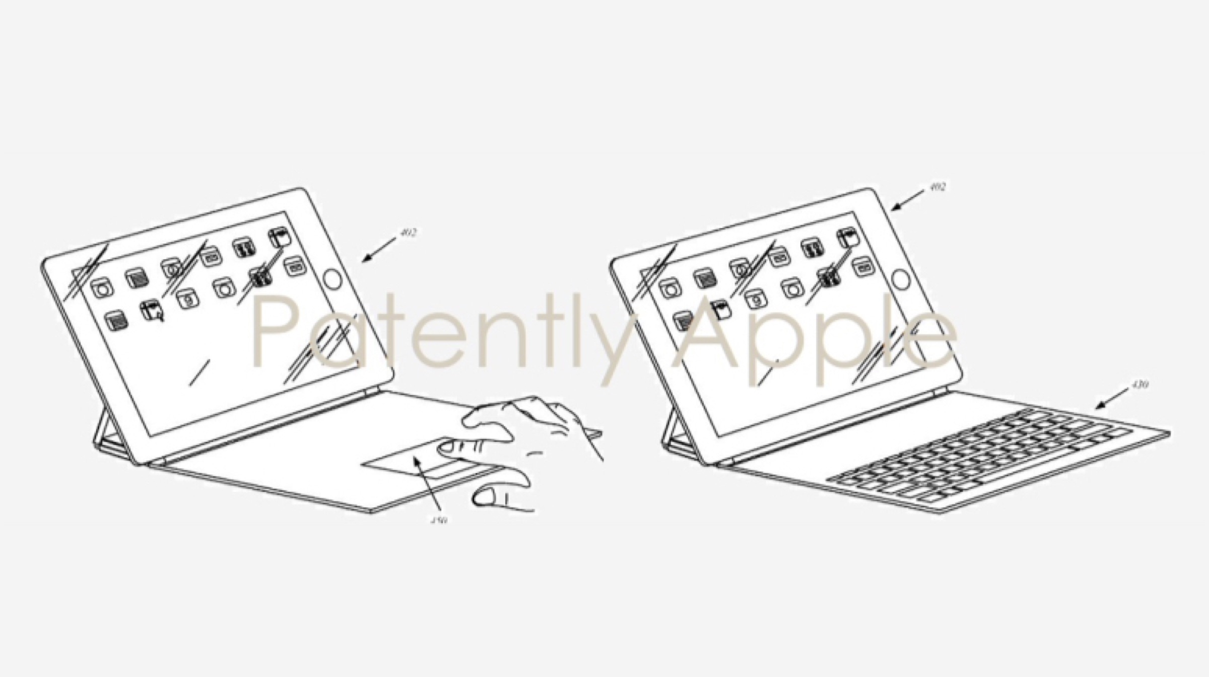 The second patent covers a device that is quite similar to the Apple Folio smart keyboard, which was released alongside the iPad Pro 12.9 in the year 2016. The patent includes images of a variety of designs for a new smart keyboard that may be announced in the future. One of the images showcases a keyboard design with a space above the keyboard which can be used to input data via the Apple Pencil. Another design features the inclusion of a trackpad to the keyboard.