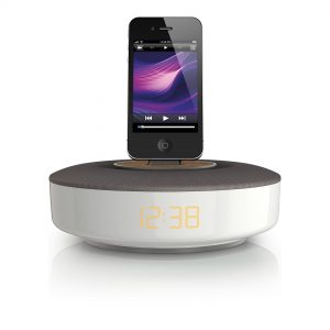 DS1150: The compact Philips DS1150 docking speaker delivers full and rich sound and automatically synchronizes with your iPhone/ iPod’s clock settings. You can also enjoy an adjustable night light and the convenience of charging a second mobile device.