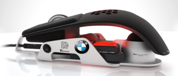 Computer Mouse designed by BMW Group DesignworksUSA revolutionizes the world of gaming. A futuristic piece of High Tech gives a boost to electronic gaming / Global product launch of Thermaltake´s Level 10 M Mouse in August 2012.