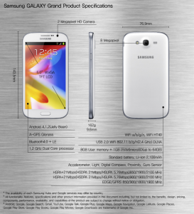 The device looks strikingly similar to Samsung’s current flagship smartphone, the Galaxy S3 and comes with 8GB of internal storage along with a micro-SD card slot using which, users can expand the storage on the device by up to 64GB. For connectivity, the Galaxy Grand features 3G, Wi-Fi, Bluetooth 4.0, A-GPS Glonass and DLNA.