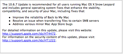 Apple has released OS X 10.6.7 for Mac computers, and it includes some stability, performance, and security enhancements. There are also a bunch of new fixes that include those new display problems plaguing the new Macbook Pro models.
